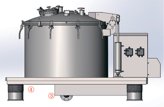 液/固混合流體通過進料管分布于離心機轉(zhuǎn)鼓內(nèi),在離心力場作用下,通過濾片截留固相,濾出液相。持續(xù)進料,直至料滿,停止進料,如工藝需要時則對濾餅進行洗滌、提純,同時將洗滌液濾出。進一步脫液,直至達到分離要求。停機,開蓋,人工或吊袋將濾餅卸出,完成一次工作循環(huán)。