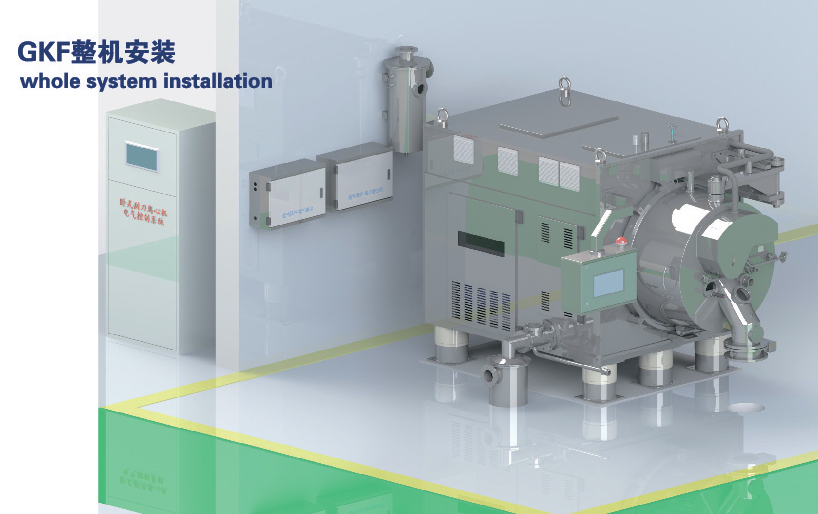 The automatic control system controls main engine, hydraulic system, pneumatic system, N2 protection system, valves as well as pumps, valves and material conveyance system etc. relating to the centrifuge.