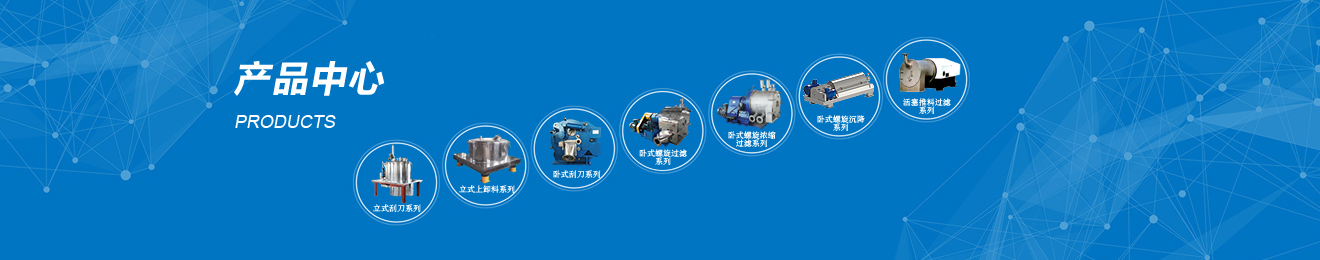 The suspension will be fed into rotor drum via feed pipe firstly through the filtering cavity between the rotor drum and screw and then cone bottom of the rotor drum. Under effect of centrifugal force, liquid content of the suspension will be filtered out via the filter net in the rotor drum while the solid content retained in the drum which will be forced to move from smaller end of the drum to the larger end under effect of the centrifugal force as well as differential between the screw and rotor drum. As rotating diameter of the drum increases, the centrifugal force increases, which reduces moisture content of the solid (which is high at beginning) to a level as low as possible before discharge, achieving automatic continuous process of liquid/solid separation.
